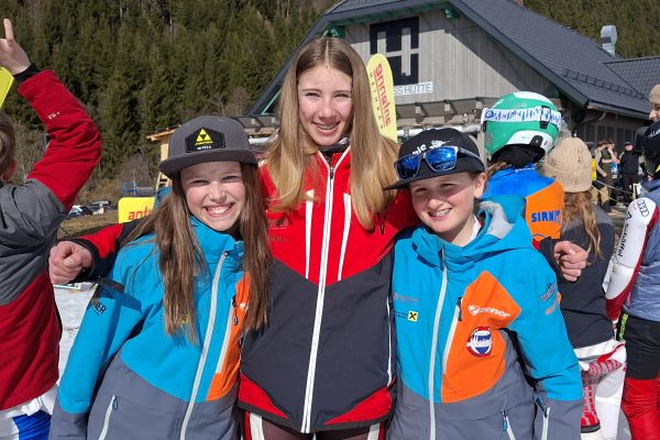 Carolin Kerschbaumer und Sophie Reichhold holten am 4. März gemeinsam mit zwei weiteren Mädchen aus dem Bezirk Spittal GOLD im Teambewerb bei der Ski-Alpin-Landesmeisterschaft auf der Gerlitzen.