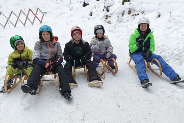 In der zweiten Jännerwoche nutzte die Kleinklasse das schöne Wetter und die gute Schneelage und fuhr in der Pause mit dem Auto nach Heiligenblut zum Rodeln.