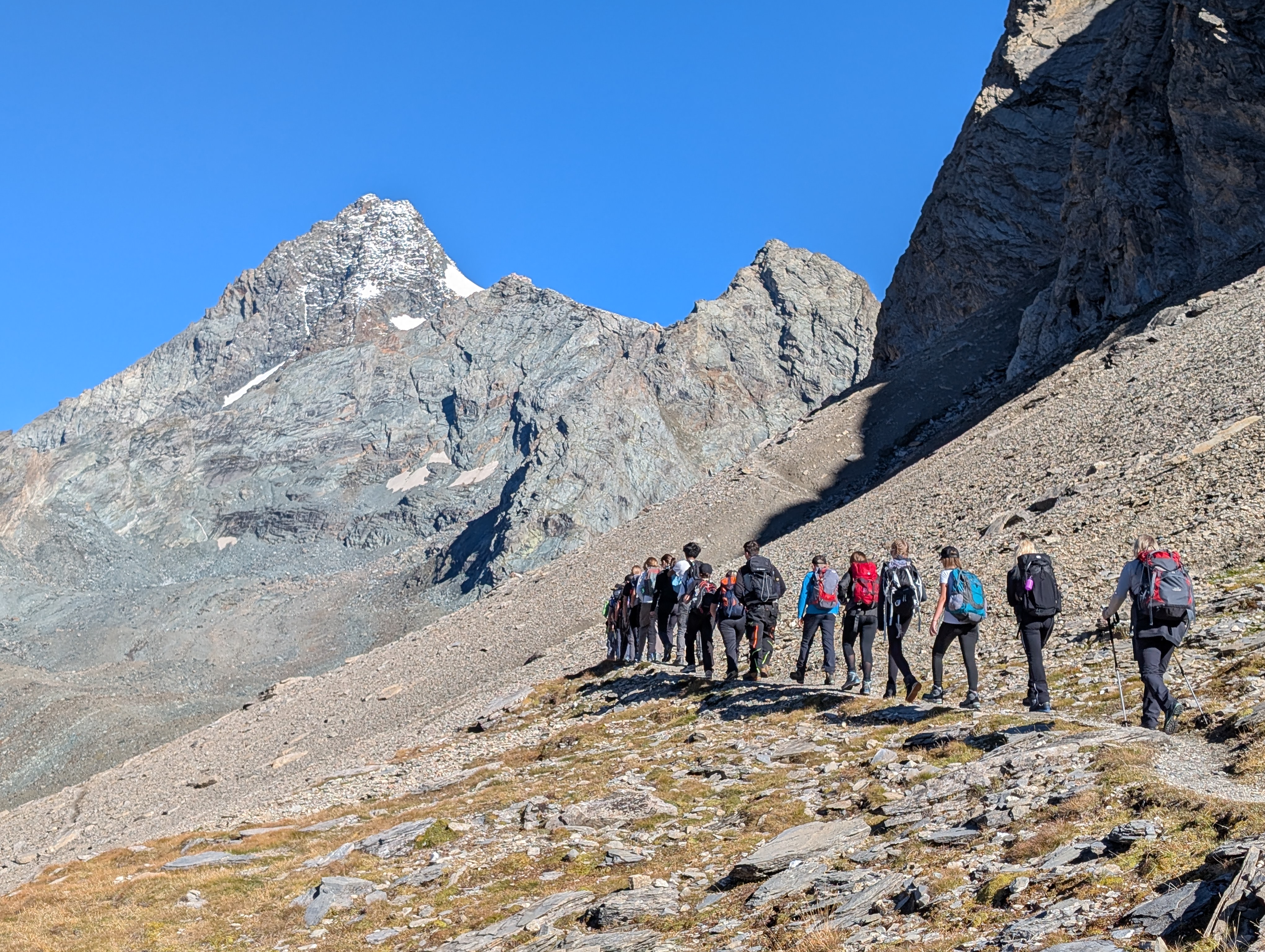 Nach dem Motto unserer Landeshymne – „Dort, wo Tirol und Salzburg grenzt, des Glockners Eisgefilde glänzt“ – führten die Hochalpinkurse unsere vierten Klassen bei herrlichem Herbstwetter in die beeindruckende Hochgebirgslandschaft des oberen Leitertals am Fuß des Großglockners.