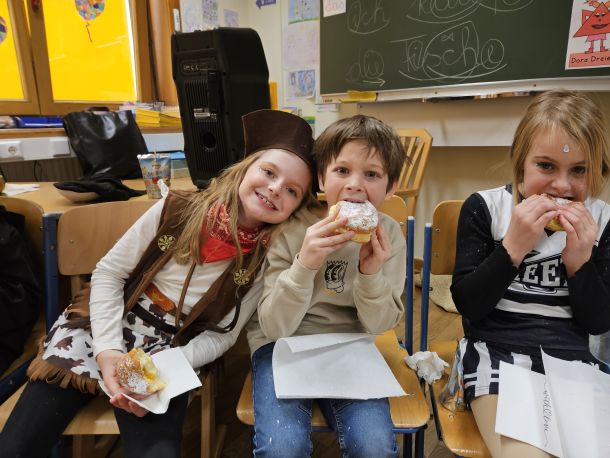 Es wurde gespielt, getanzt und gefeiert. Ein schöner, lustiger Vormittag für Lehrer und Schüler. Ein herzliches Dankeschön ergeht an den Kiwanis Club Lienz/Osttirol sowie an Herrn Notar Egarter in Winklern, welche auch heuer wieder Krapfen für alle unsere Schülerinnen und Schüler gespendet haben.