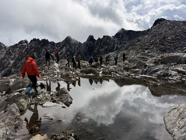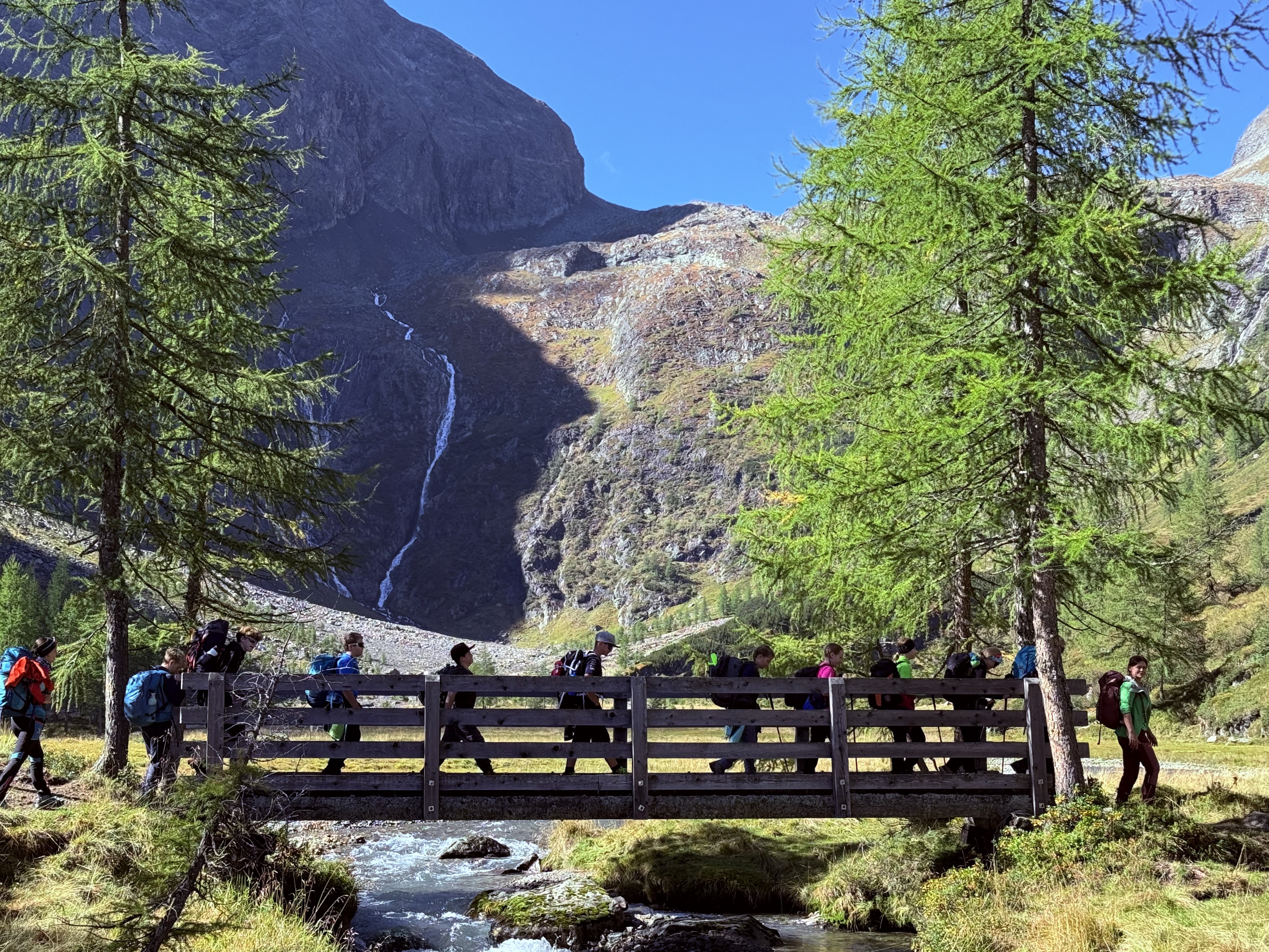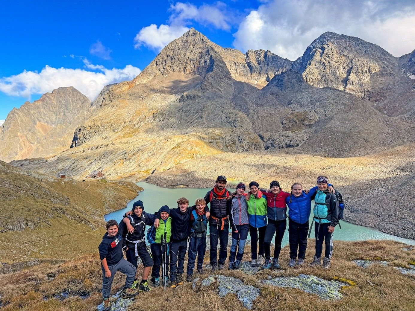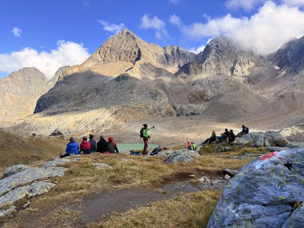 Von dort aus erkundeten sie die imposante Bergwelt. Es ging über glattgeschliffene Felsrücken bis zur Niederen Gradenscharte auf 2.800 Metern. Einer besonders sportlichen Gruppe gelang sogar die Besteigung des Keeskopf (3.081 m). Mit den Rangern erforschten die Schüler außerdem das Phänomen der Blockgletscher – gewaltige Schutt- und Eismassen, die als wichtige Wasserspeicher gelten.