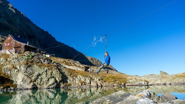 Ein besonderes Highlight wartete auch an der Hütte: Hüttenwirt Christian Krüger versorgte alle nicht nur bestens, sondern ließ einige Mutige sogar mit seiner Flying-Fox-Seilrutsche über den Gradensee sausen.