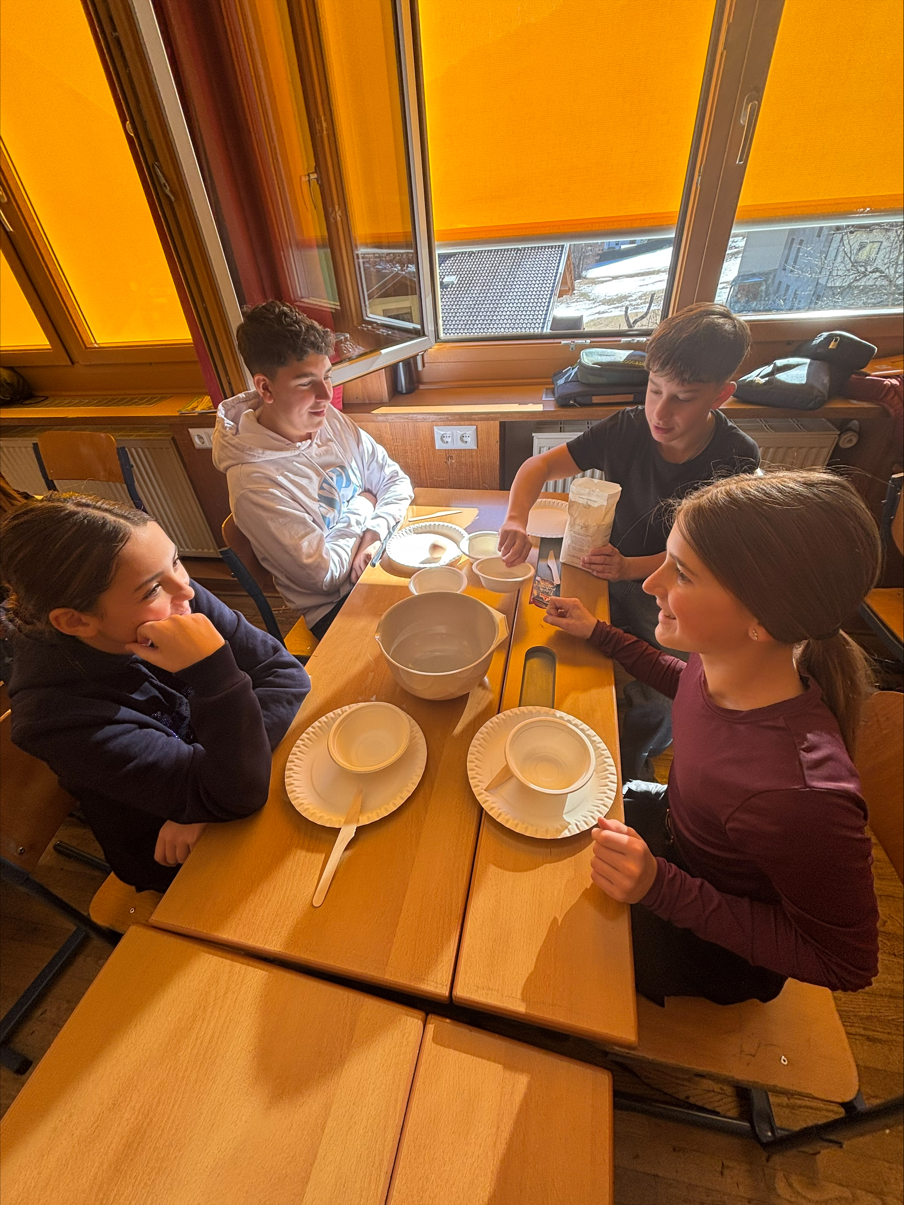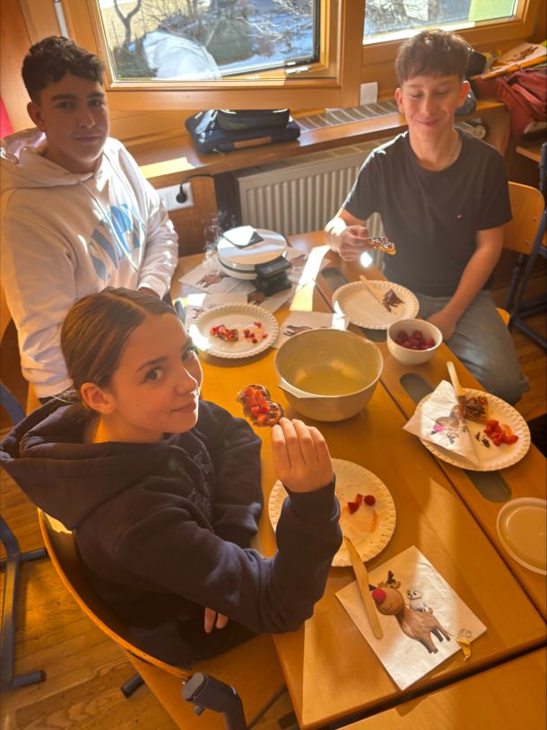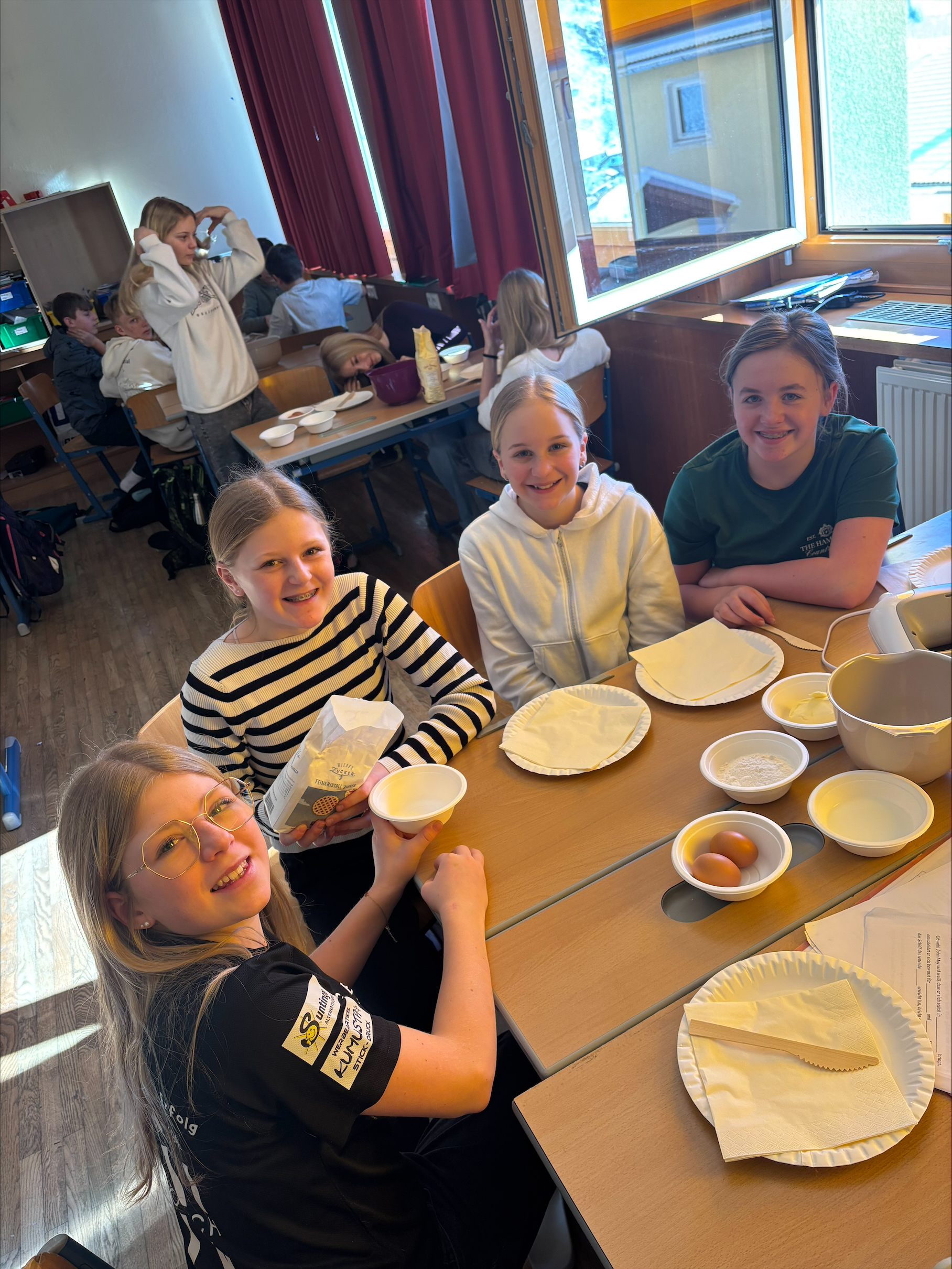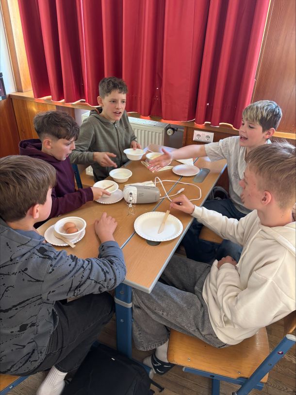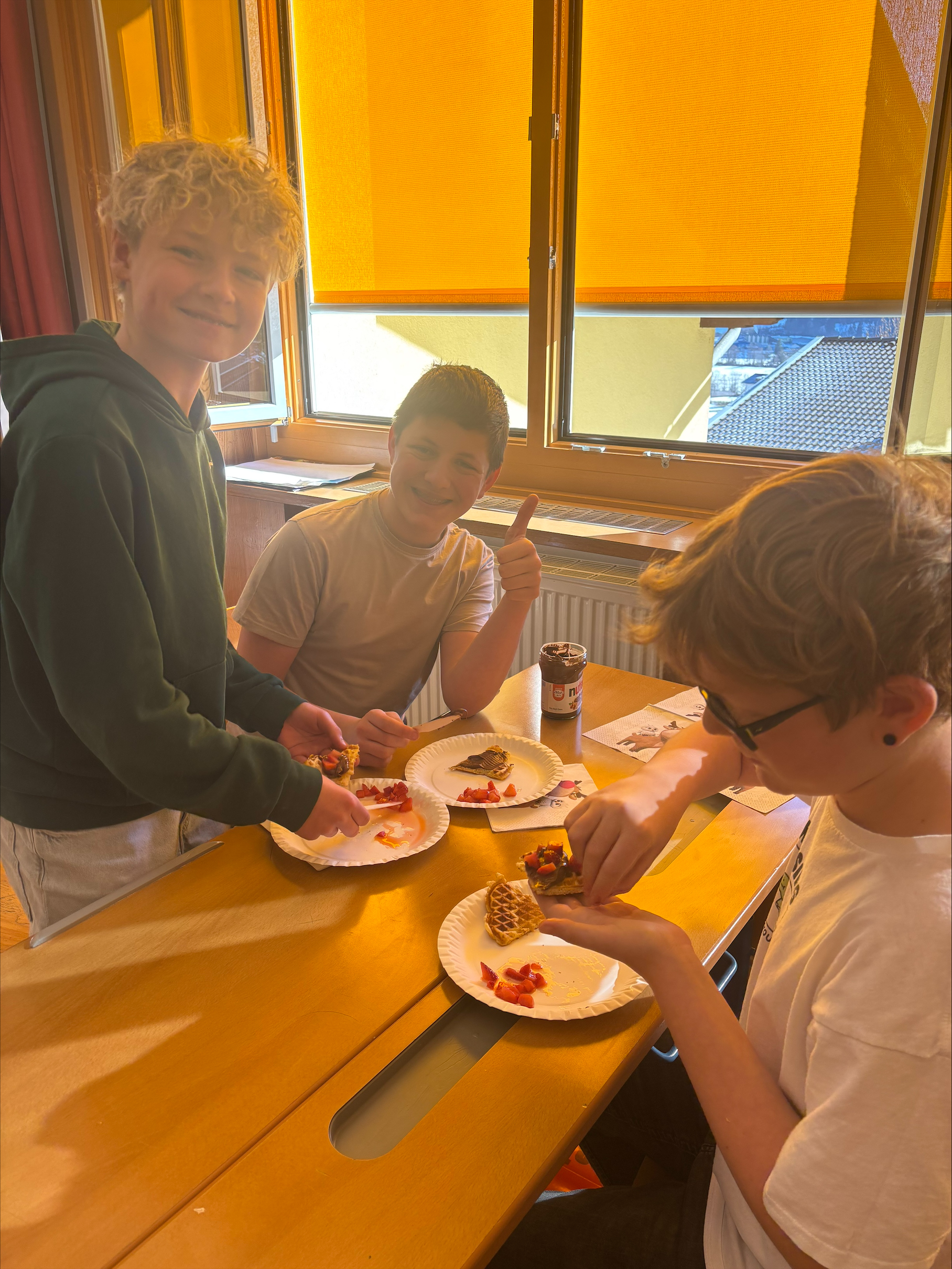Zuerst haben wir die Bruchzahlen eines Rezepts in Dezimalzahlen umgewandelt und anschließend die einzelnen Mengen geschätzt. Danach haben wir gemeinsam überprüft, ob unsere Schätzungen richtig waren. Mit diesen Zutaten haben wir dann Waffeln gebacken.😋