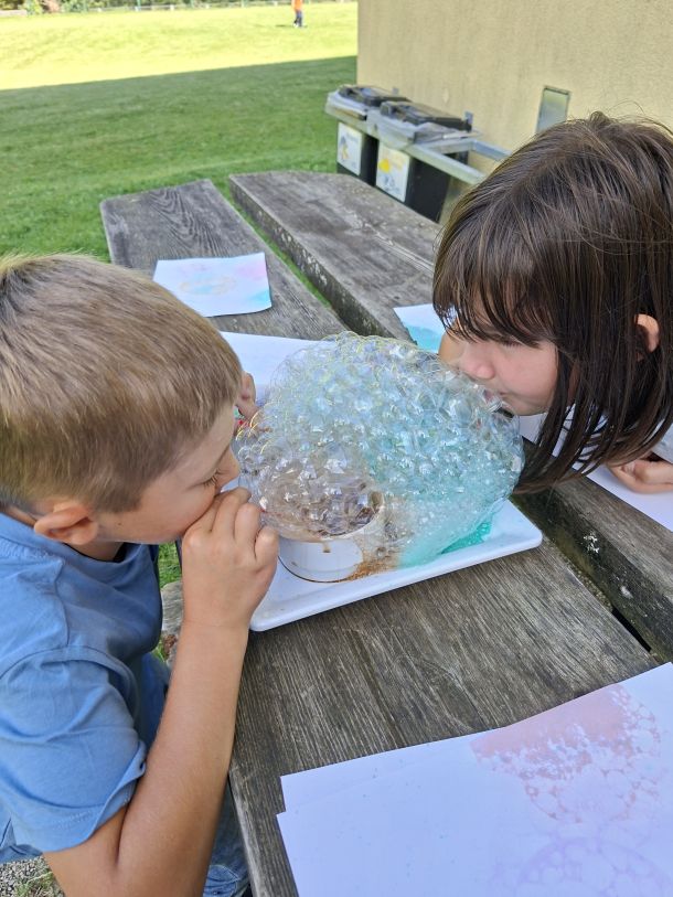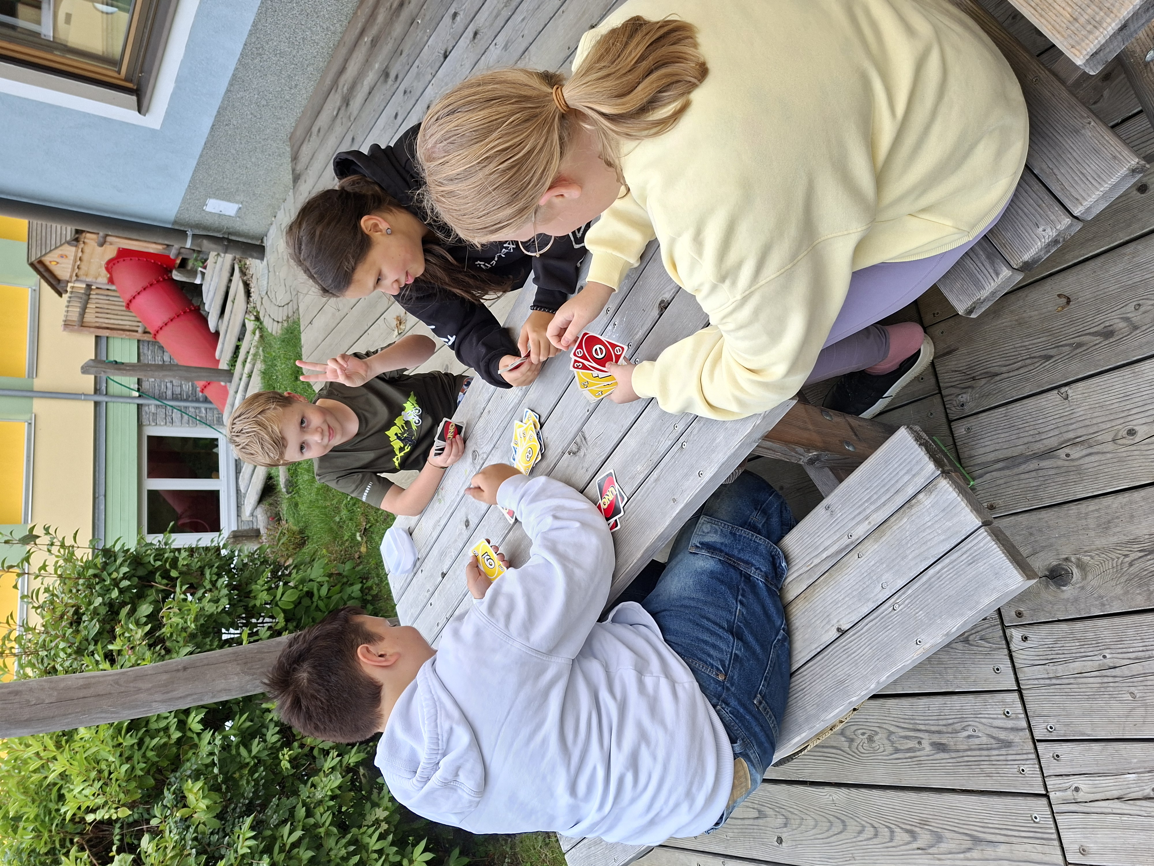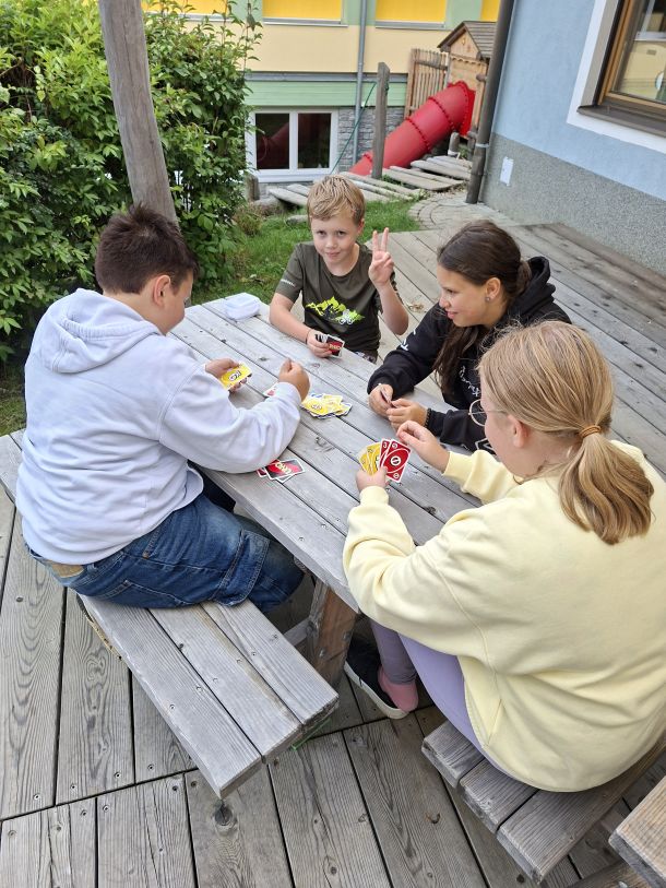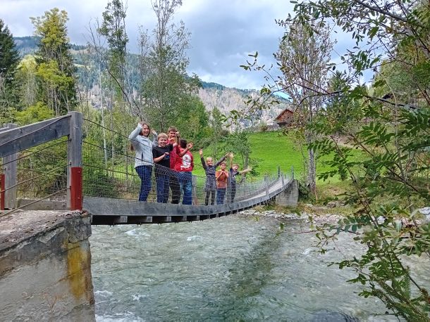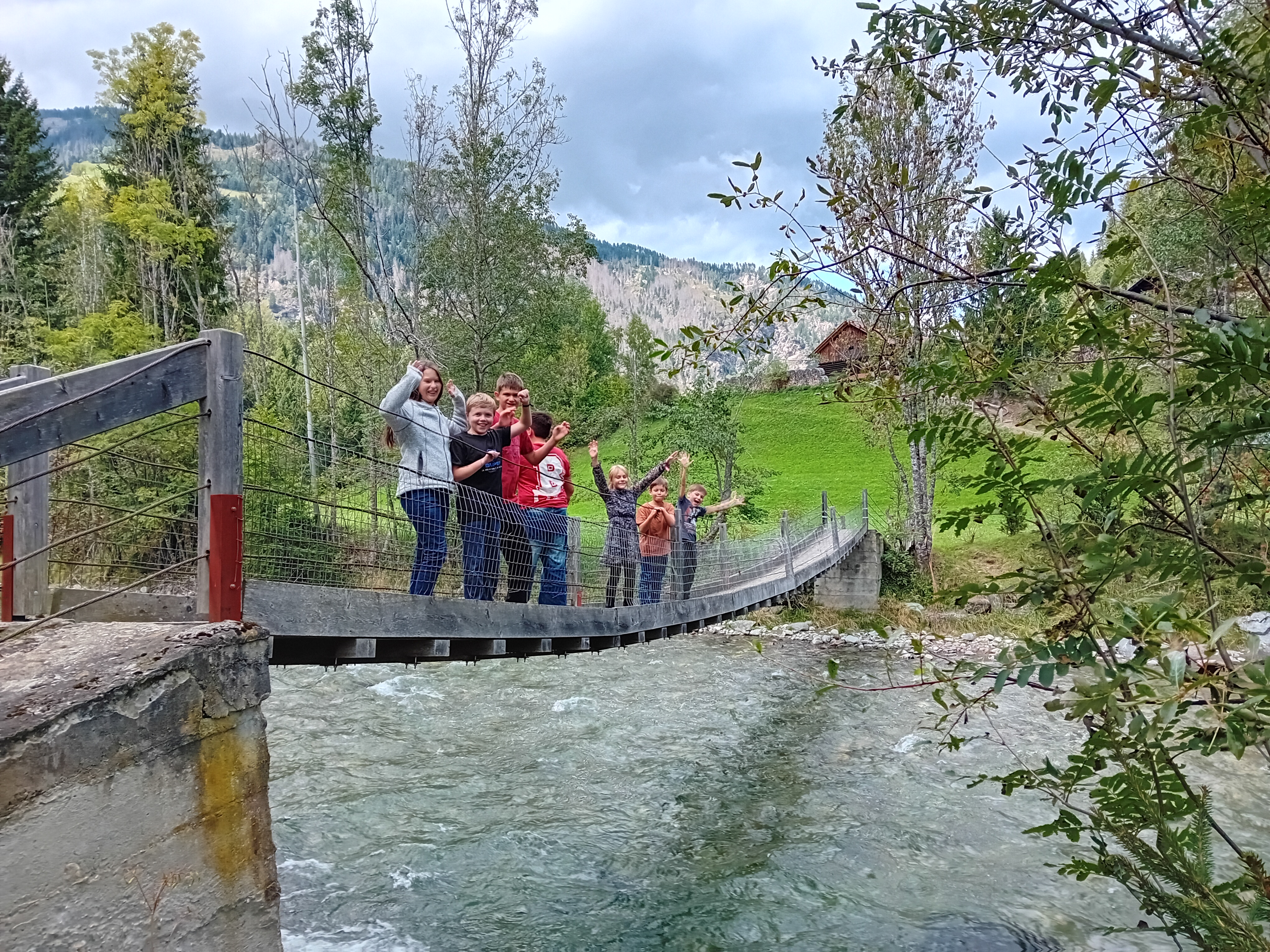Das schöne Spätsommerwetter erlaubte uns viele Aktivitäten im Freien, sodass wir Ausflüge zur Möll und in den Wald unternahmen. Eine lustige Schnitzeljagd führte uns in die Ortsmitte von Winklern und ins Jugendzentrum. Andere Nachmittage haben wir auf Sport- und Spielplatz der Schule verbracht und uns die Zeit mit Fußball, UNO oder auch Seifenblasenkunst verschönert. Eines Tages hat uns