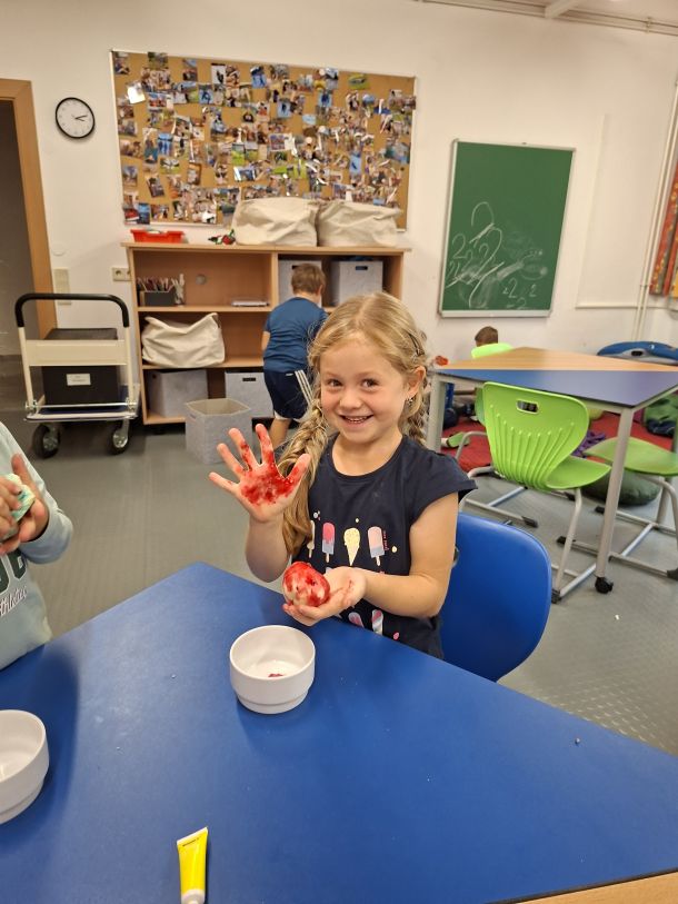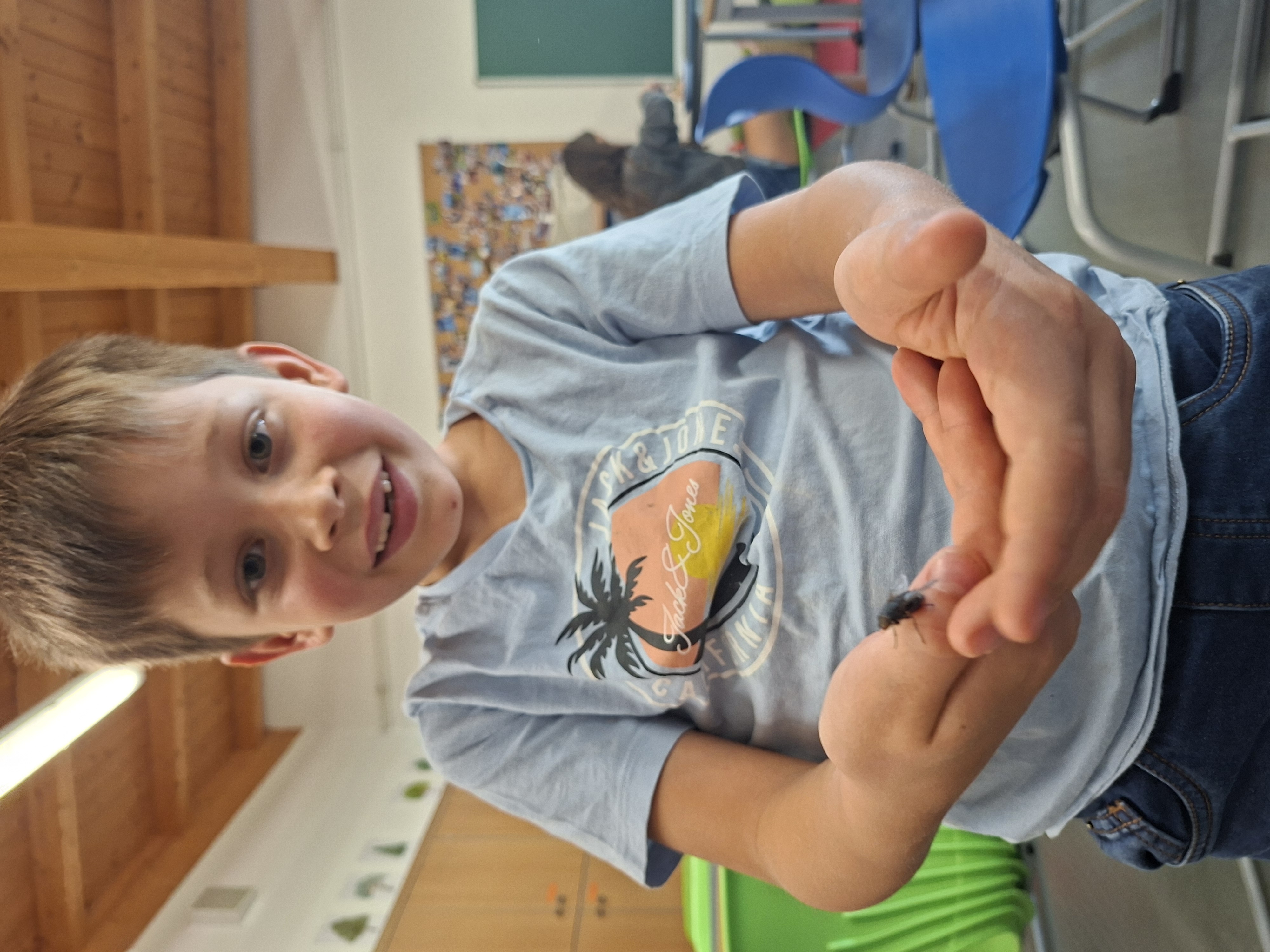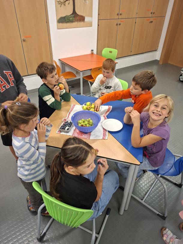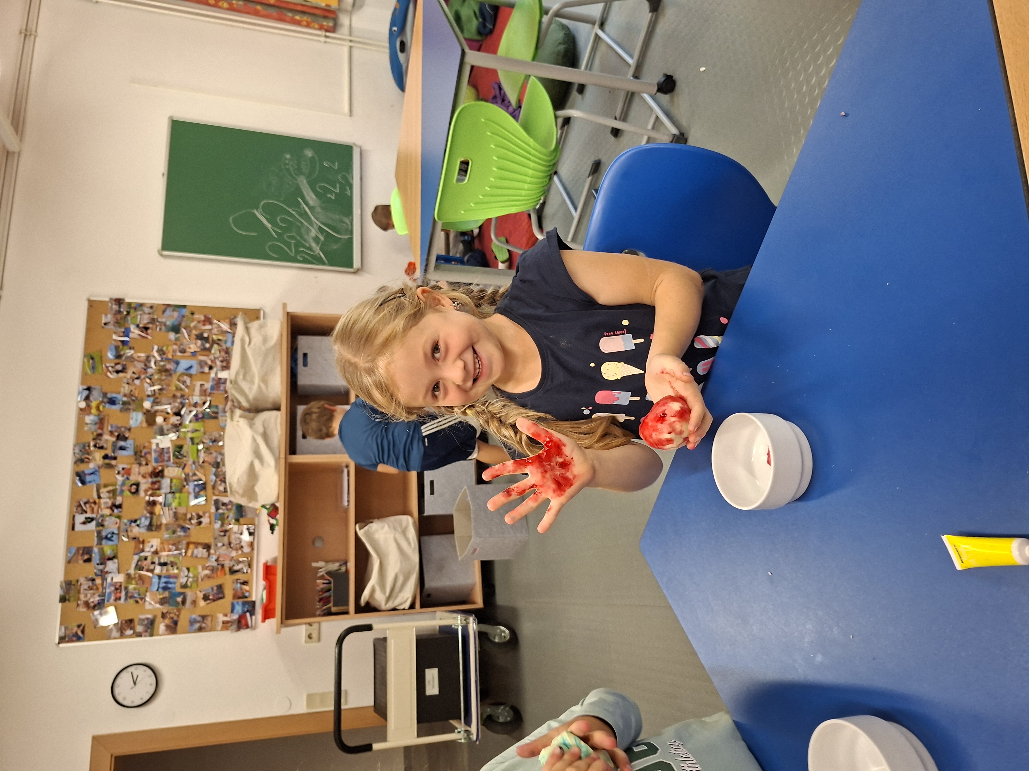 Freddy die Fliege einen Besuch abgestattet. Auch in der Küche haben wir uns ausgetobt und bunte Regenbogenwaffeln sowie leckere und gesunde Apfel-Kekse gebacken. Sogar unsere eigene bunte Knete konnten wir mit wenigen Zutaten selber herstellen und daraus lustige Figuren gestalten. Unser erster Freitags-Ausflug hatte die LLA in Lienz als Ziel, wo wir super saftige und süße Äpfel geerntet haben. Diese haben wir dann zu bunten Apfel-Lollies weiterverarbeitet. Der krönende Abschluss dieses Monats war der Geburtstag von Marcell, den wir mit viel Kuchen gefeiert haben. Wir freuen uns schon jetzt auf