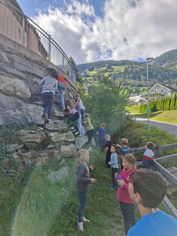 Wir haben den September genutzt und uns einander und die GTS-Räumlichkeiten kennengelernt, den Spielplatz und Turnsaal unsicher gemacht und die Umgebung in Winklern erkundet.