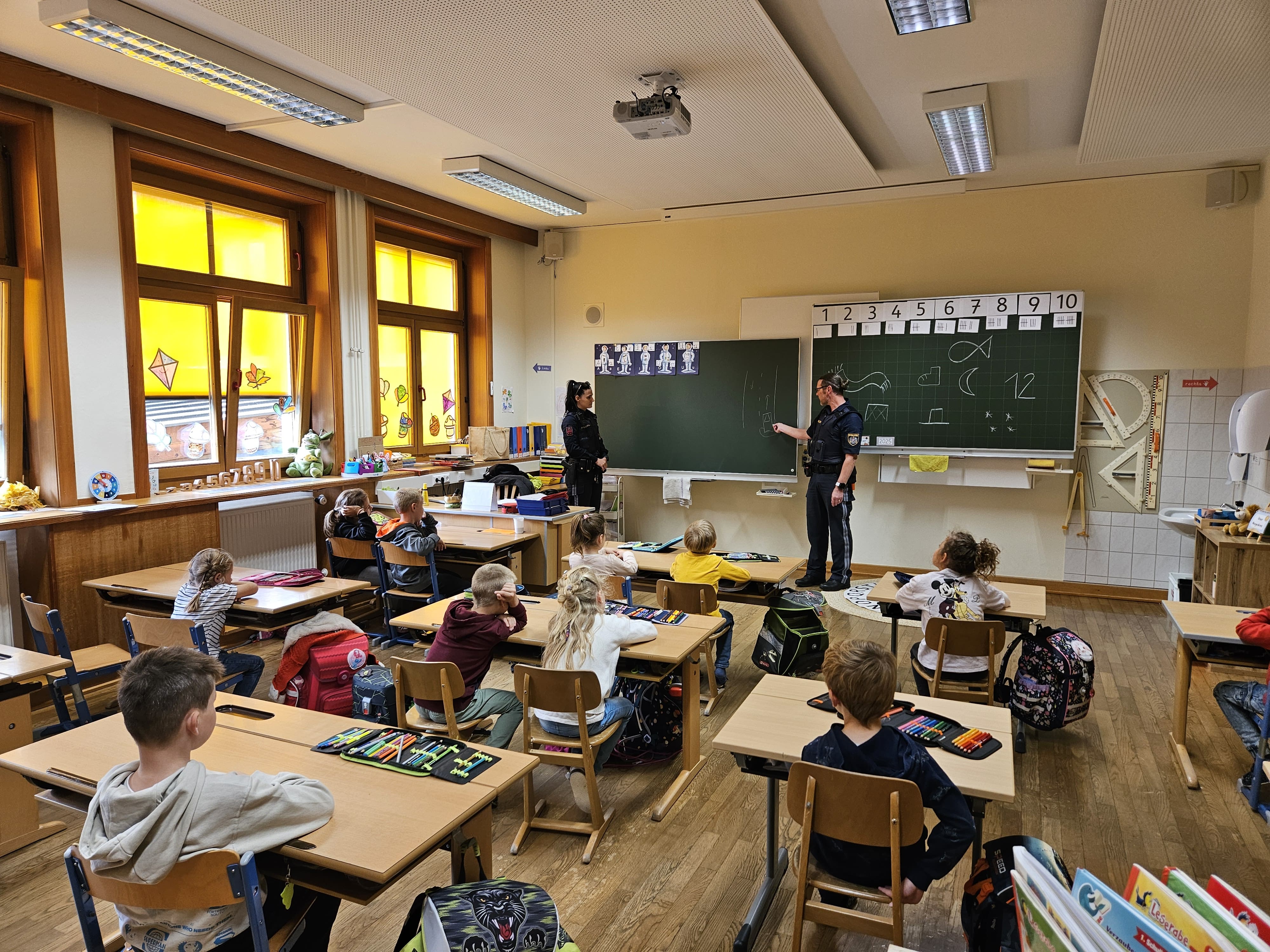 Noch vor den Ferien war die Polizei in der ersten Klasse zu Besuch.