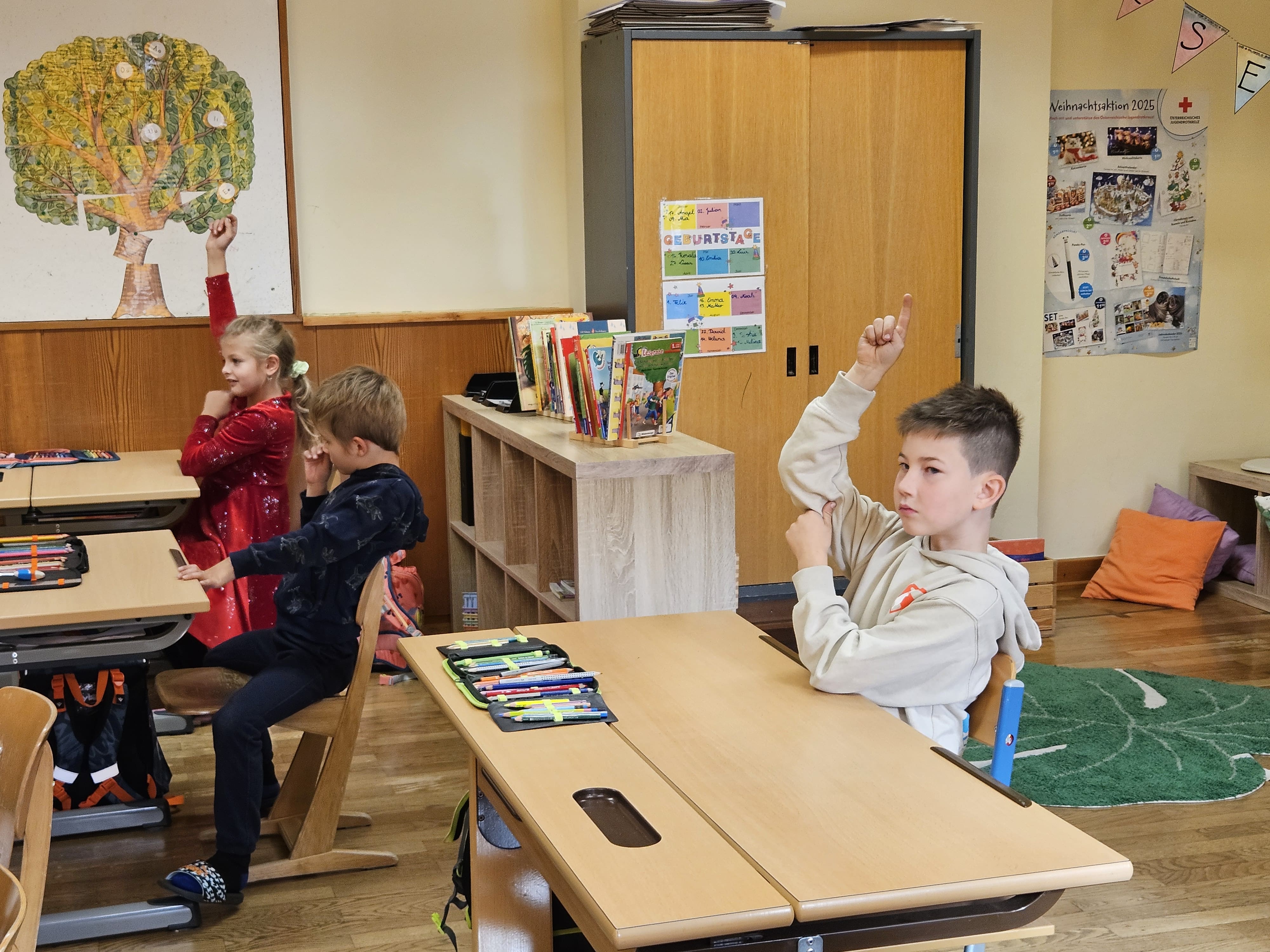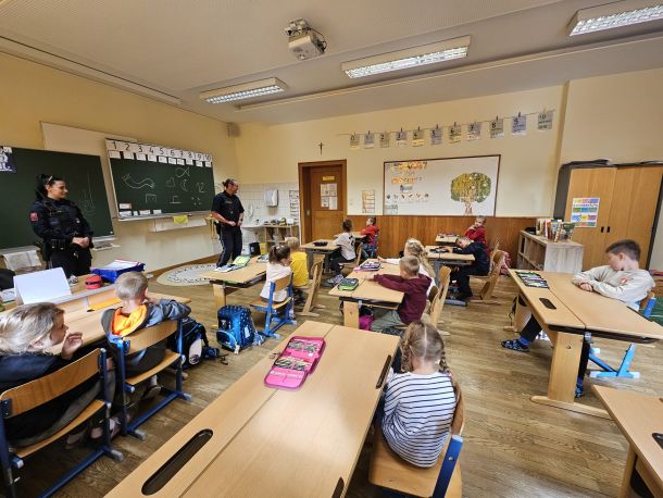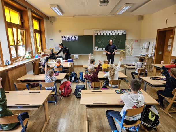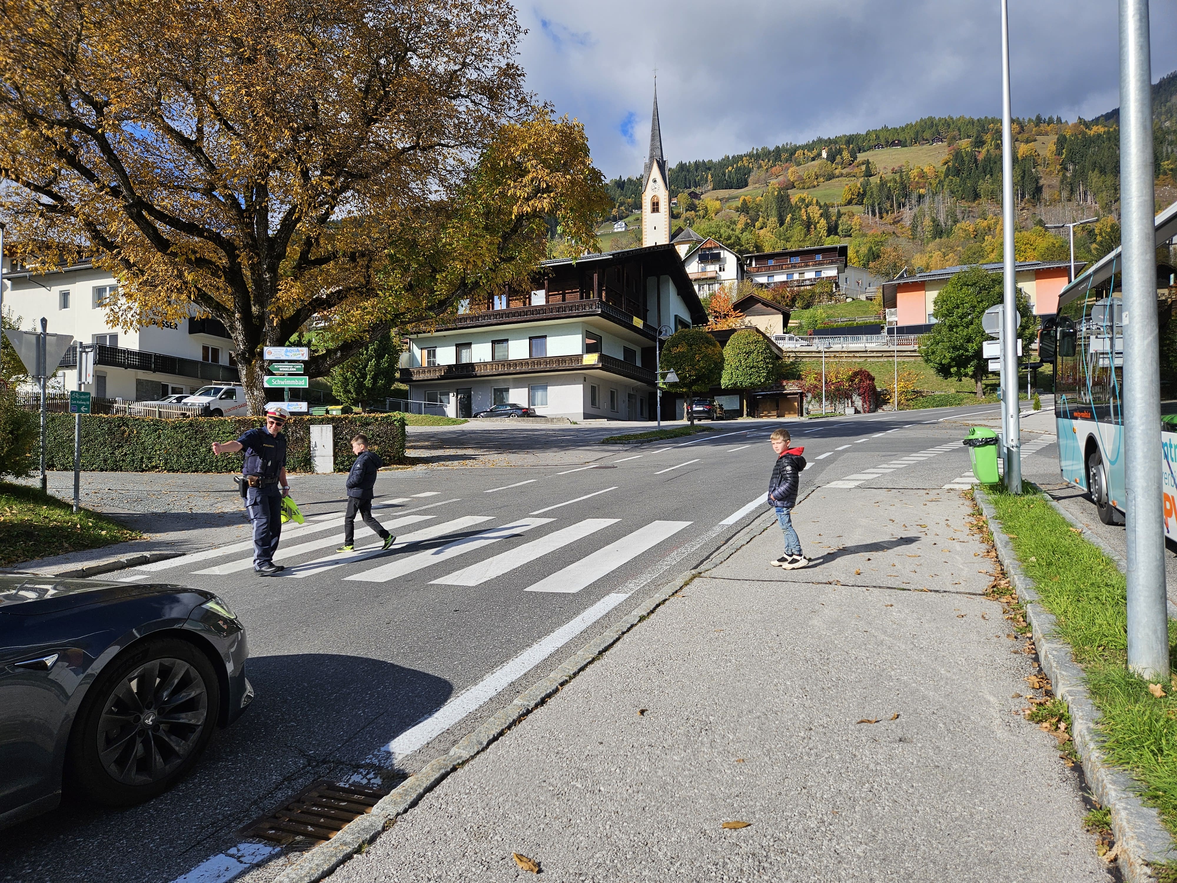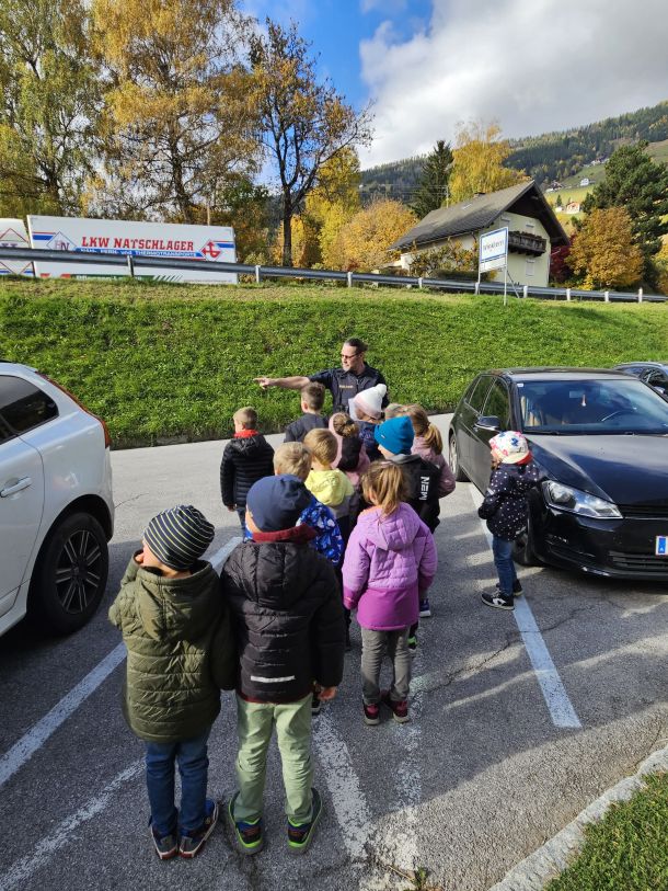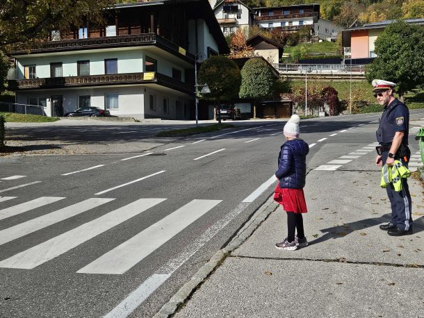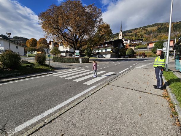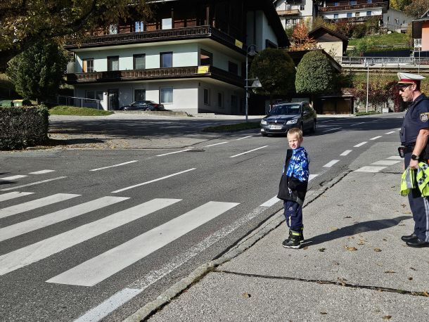 Hauptthema war sicheres Verhalten im Straßenverkehr, vor allem aber auf dem Schulweg. Dabei wurde nicht nur über die passende Bekleidung, um für andere Verkehrsteilnehmer unterwegs gut sichtbar zu sein, gesprochen, sondern auch das richtige Überqueren einer Straße geübt.