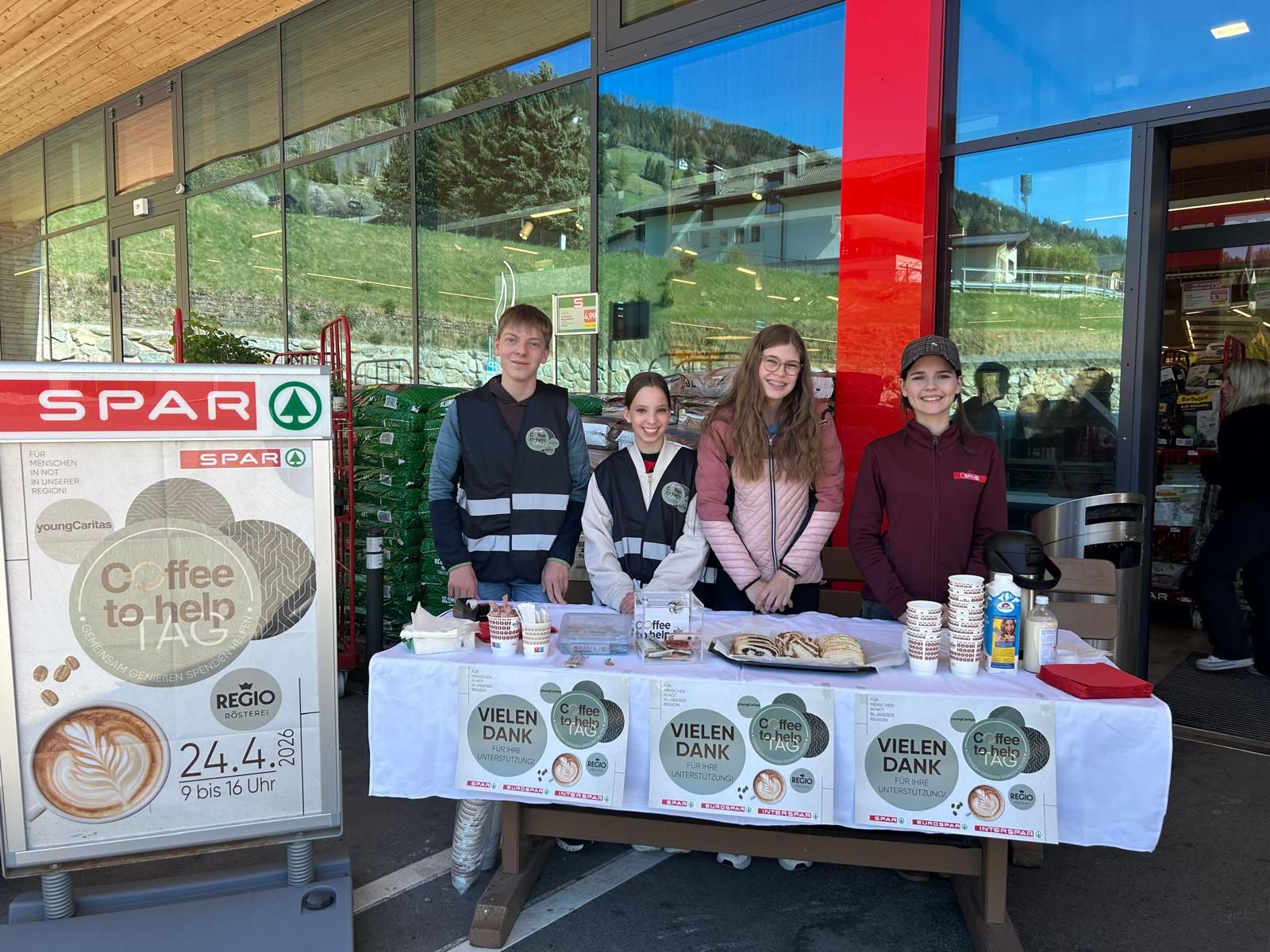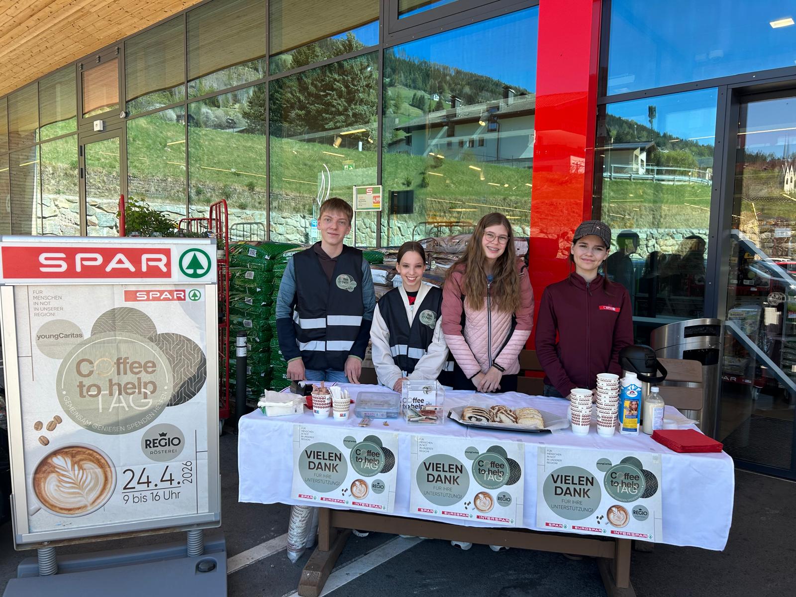Die Schüler:innen der 4b haben am Freitag, den 24.4.2026, engagiert an der Aktion „Coffee to help“ der Caritas teilgenommen. Mit großem Einsatz konnten sie einen wertvollen Beitrag für Menschen in Not leisten.