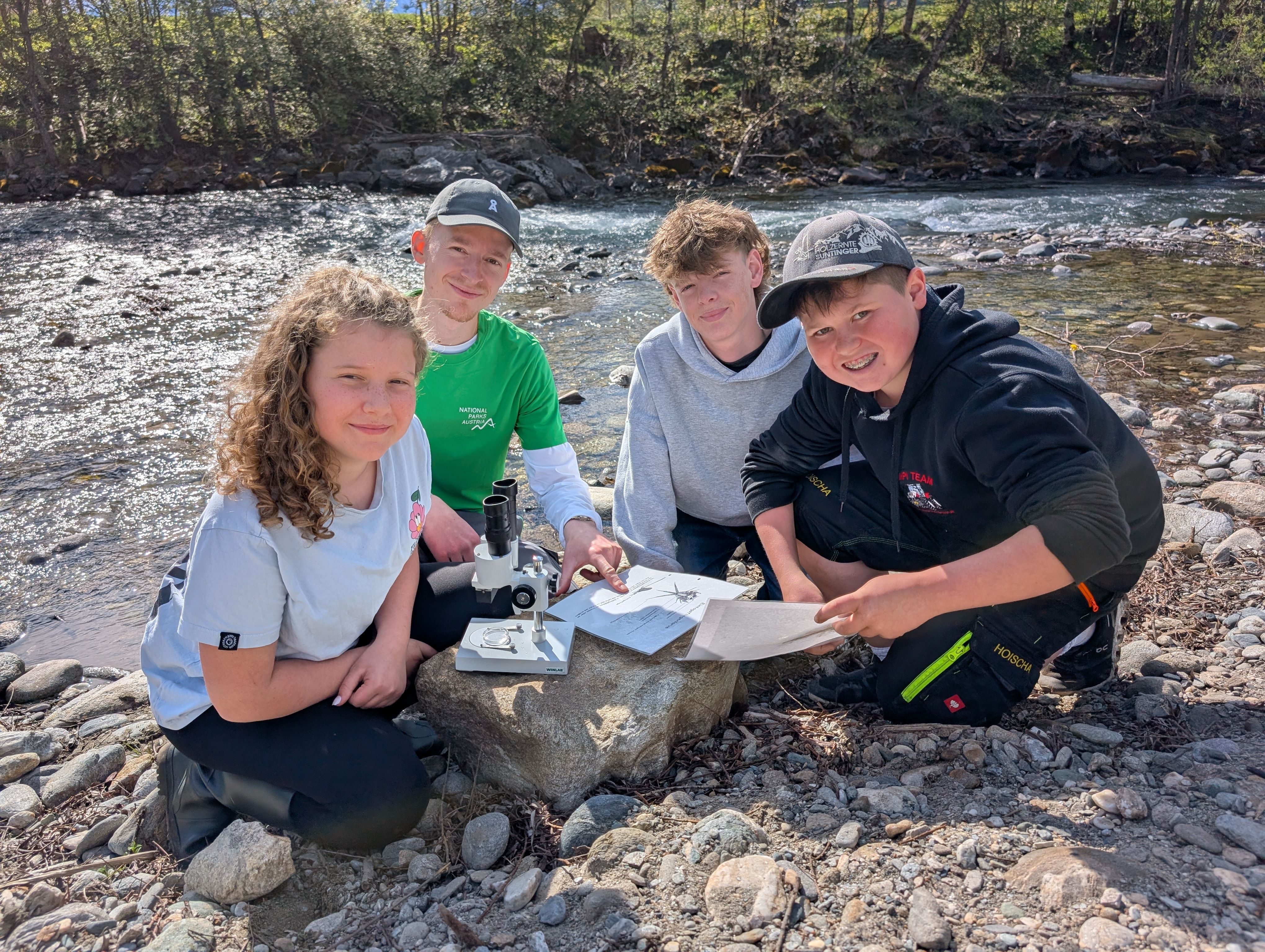 Der Auftakt fand draußen statt: An nahegelegenen Gewässern untersuchten die Schülerinnen und Schüler Bäche und Flüsse und gingen dabei auf Spurensuche nach winzigen Bewohnern. Besonders Larven von Köcher- und Steinfliegen standen im Fokus, denn sie verraten viel über den Zustand des Wassers. So wurde die Natur selbst zum Klassenzimmer.