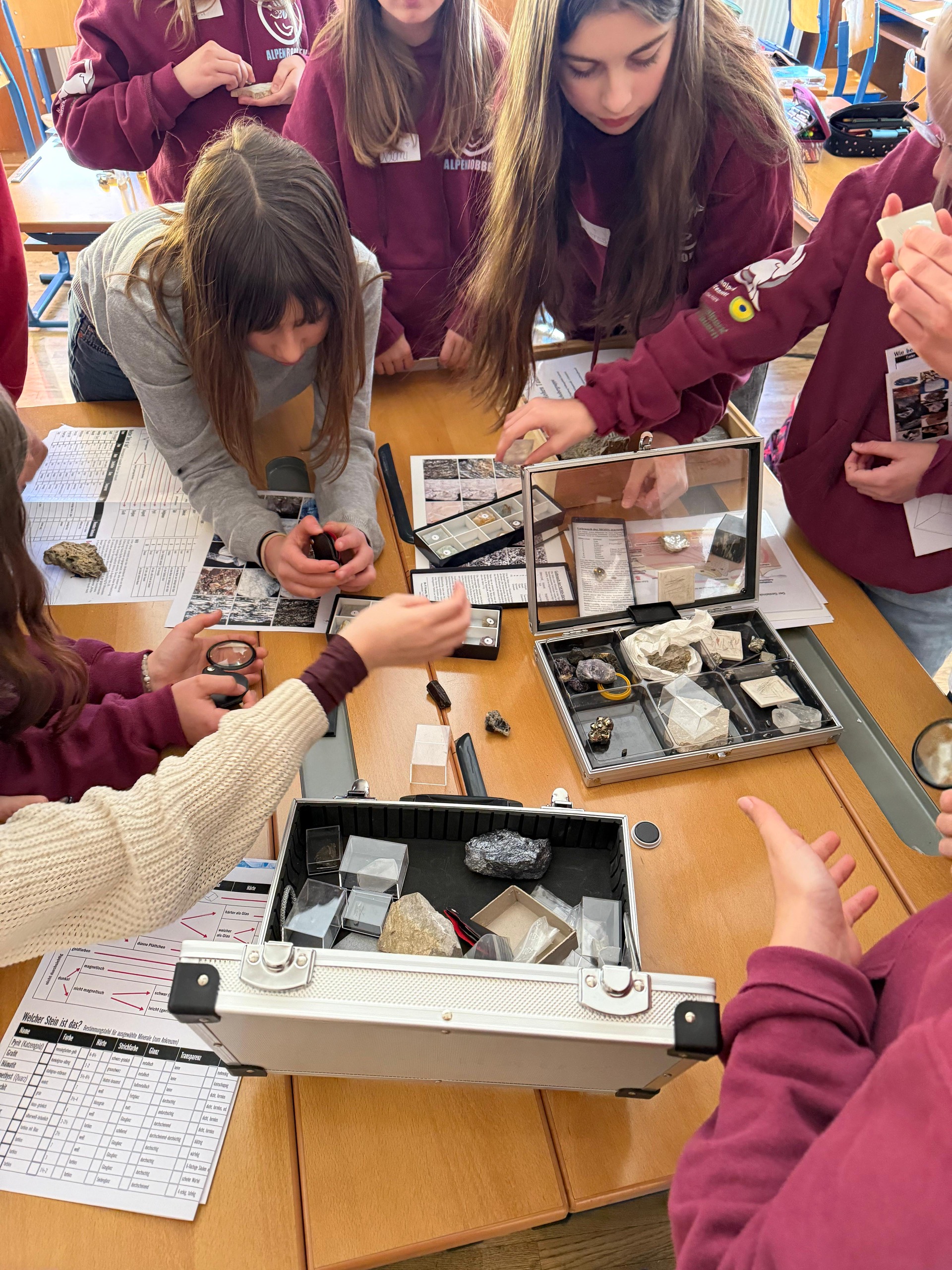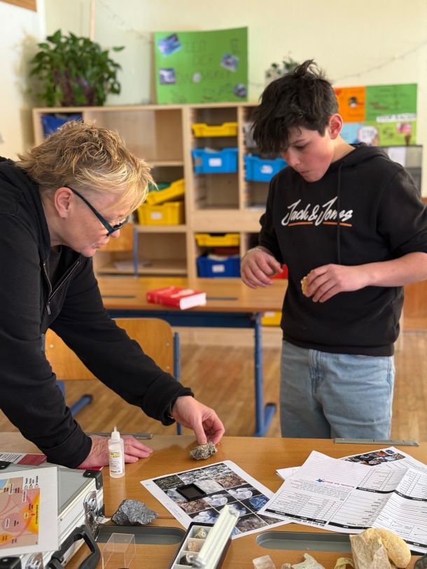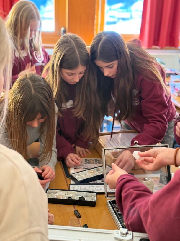 Gestern tauchten unsere Alpenrobben – die engagierten Nationalparkspezialisten unserer Schule - nicht nur tief in die Welt der Natur ein, sondern auch in die der Gesteinsbildung! Mit Expertin Dr. Claudia Dojen vom Landesmuseum Kärnten lernten wir, wie aus winzigen Partikeln mächtige Felsen entstehen und welche aufregenden Geschichten sich in jedem Stein verbergen.