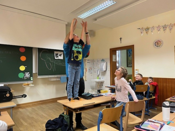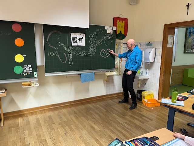 Am Freitag nahmen die 3. Klasse der Volksschule, die Kleinklasse sowie eine Klasse der Mittelschule an einem spannenden Workshop mit Georg Berger zum Thema Gehör teil.