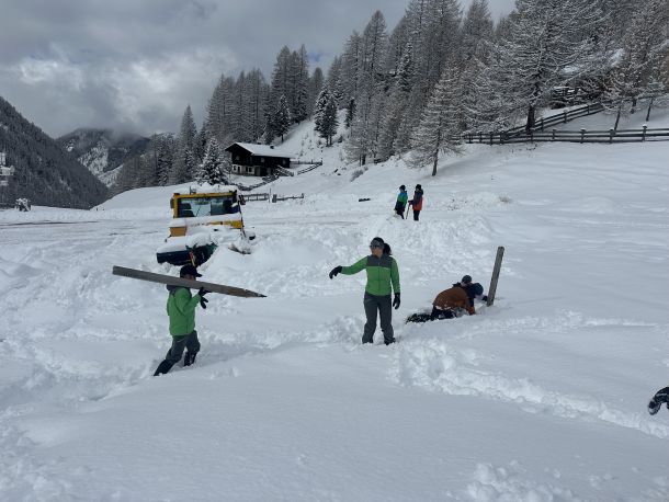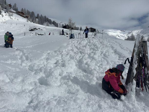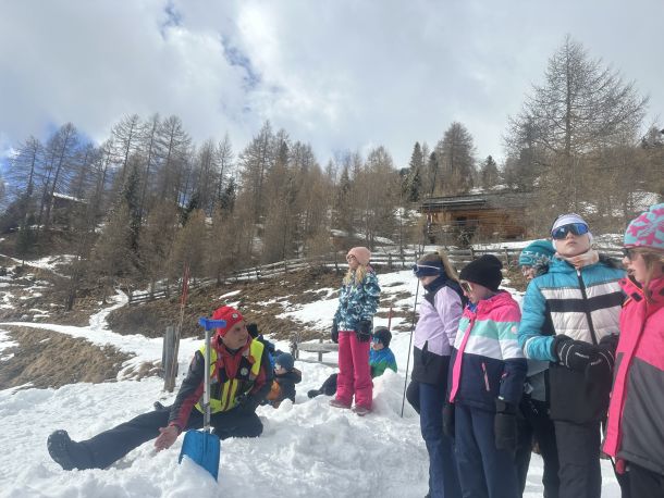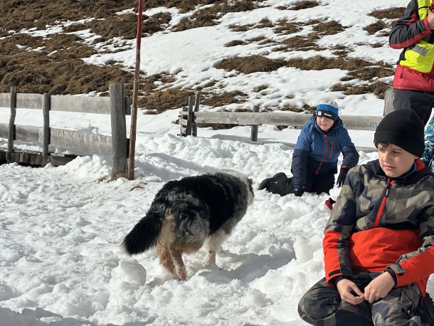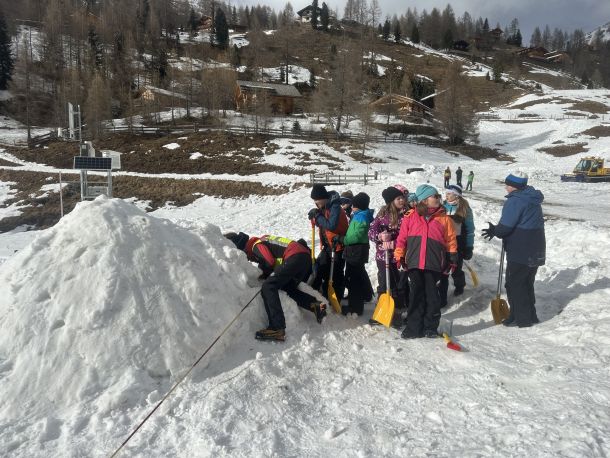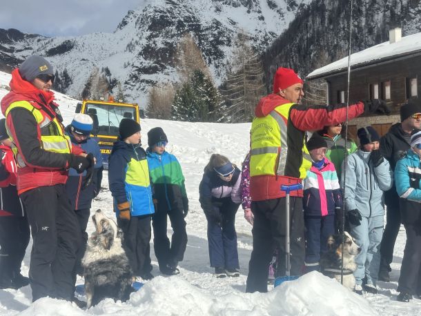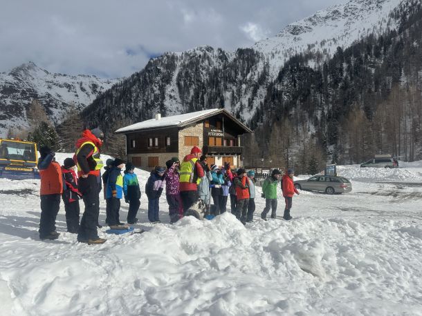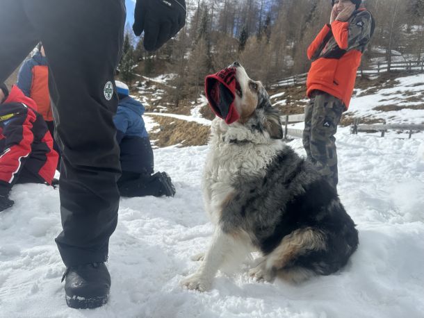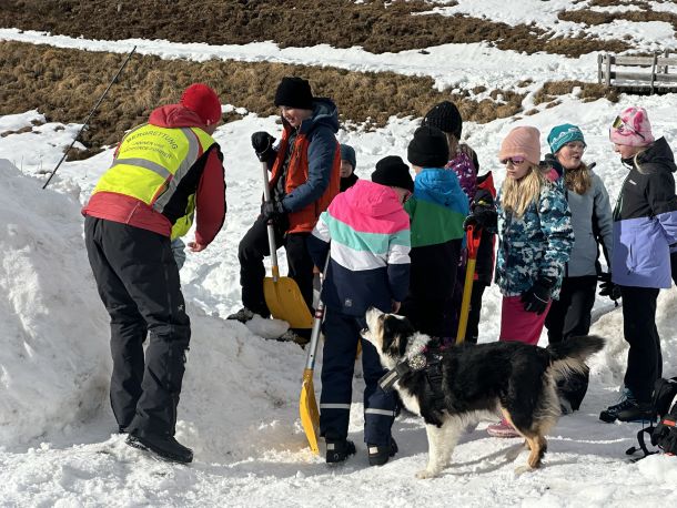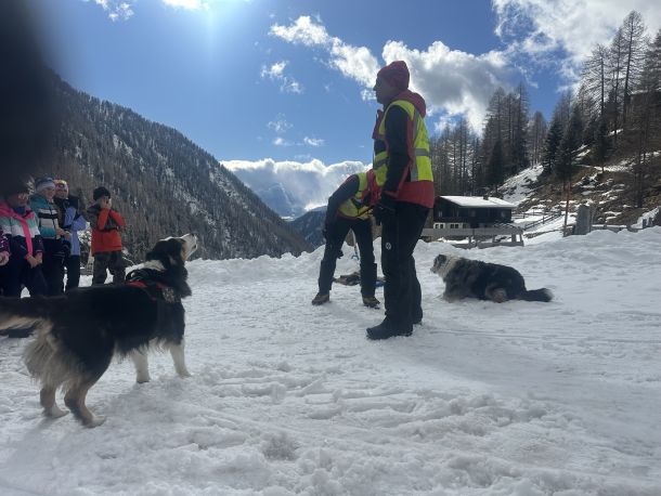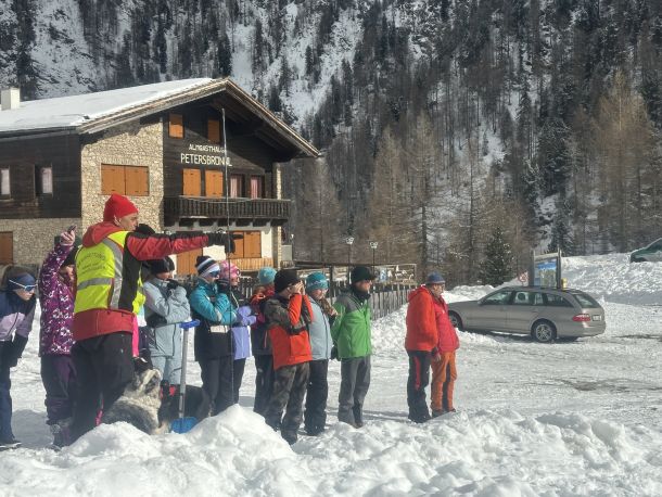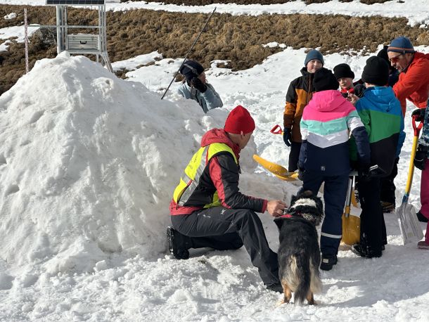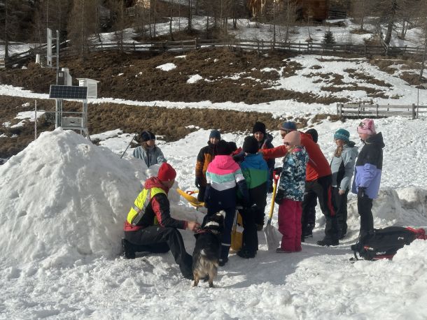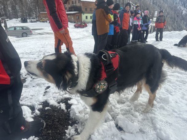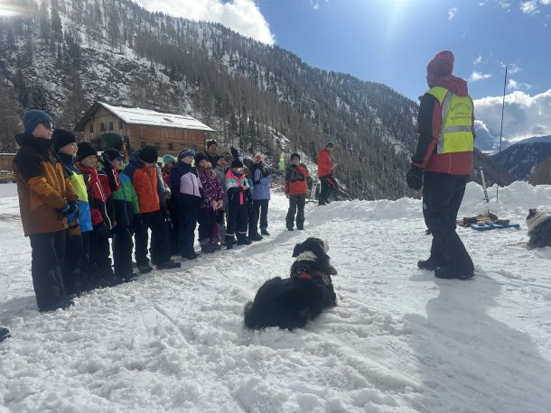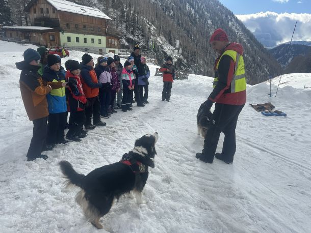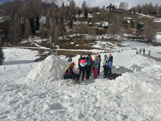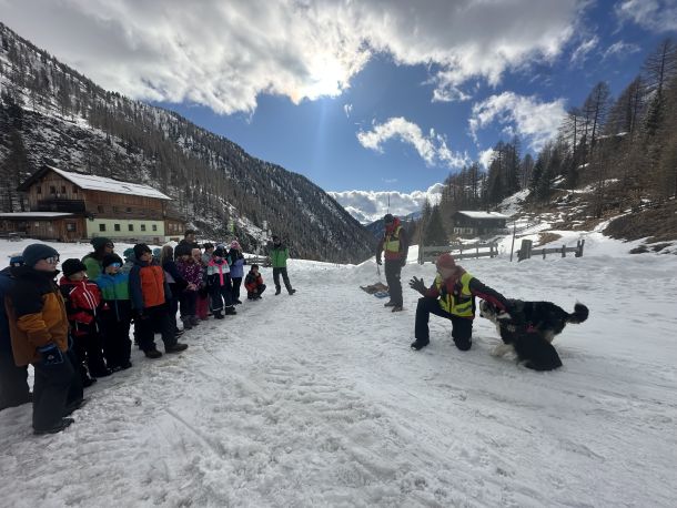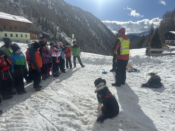 Die Bergrettung Winklern vermittelte wertvolle Erste-Hilfe-Kenntnisse, speziell für winterliche Bedingungen. Ein besonderes Highlight war die Verschüttetensuche mit Lawinen-Suchhunden, bei der die Kinder tatkräftig mithelfen durften.