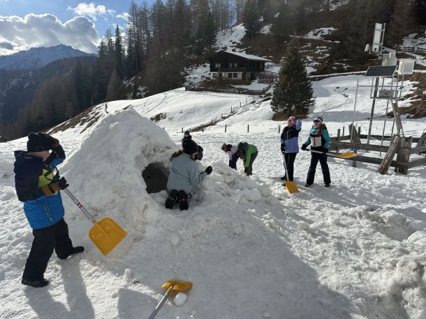 Drei Tage lang erkundeten die Kinder unserer 1. Klassen mit Schneeschuhen das winterliche Hochgebirge der Goldberggruppe, begleitet von den erfahrenen Rangerinnen und Rangern des Nationalparks Hohe Tauern.