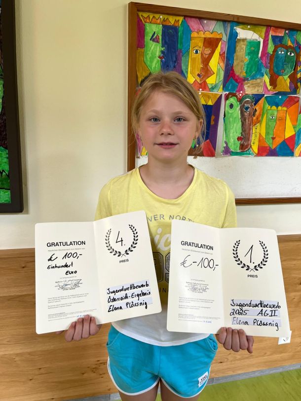 1.Platz in der 4. VS-Klasse - Kärntner Landessiegerin und 4. Platz österreichweit! Herzliche Gratulation!